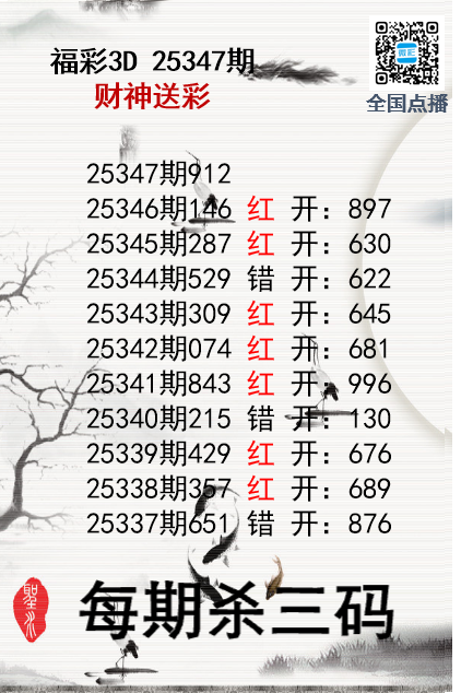 • 福彩3D25347期财神送彩杀三码