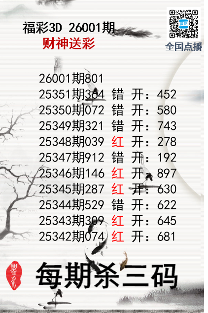 • 福彩3D26025期分析师小鲨鱼杀号图精选