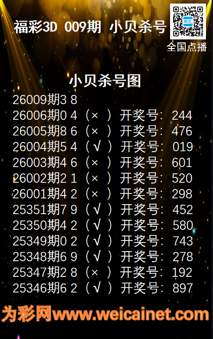 • 福彩3D26009期码师小贝杀号图精选