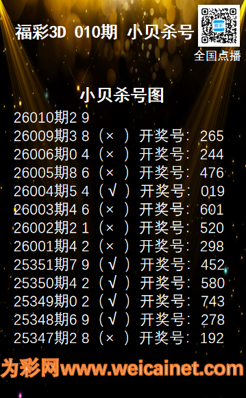 • 福彩3D26010期码师小贝杀号图精选