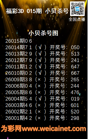 • 福彩3D26078期分析师小鲨鱼杀号图精选