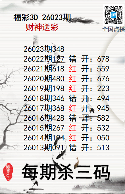 • 福彩3D26025期分析师小鲨鱼杀号图精选
