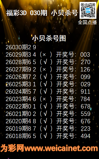 • 福彩3D26030期码师小贝杀号图精选