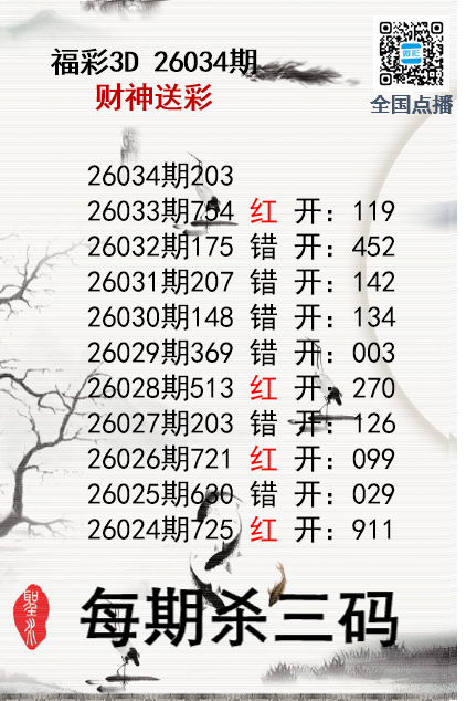 • 福彩3D26034期财神送彩杀三码