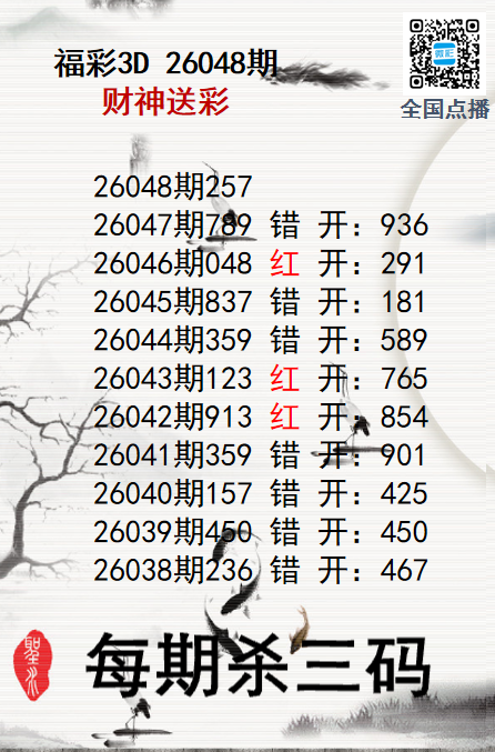 • 福彩3D26063期财神送彩杀三码