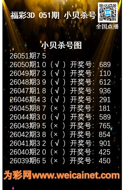 • 福彩3D26062期分析师小鲨鱼杀号图精选