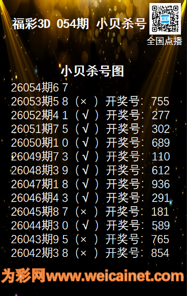 • 福彩3D26062期分析师小鲨鱼杀号图精选