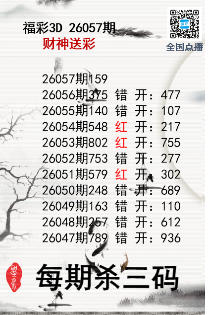 • 福彩3D26057期财神送彩杀三码
