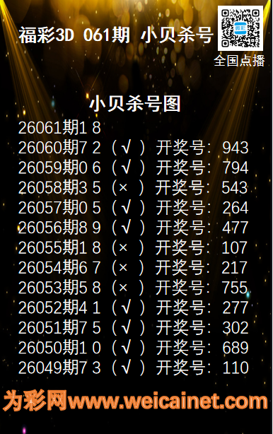 • 福彩3D26061期码师小贝杀号图精选