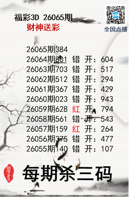 • 福彩3D26065期财神送彩杀三码