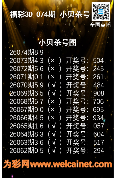 • 福彩3D26073期码师小贝杀号图精选