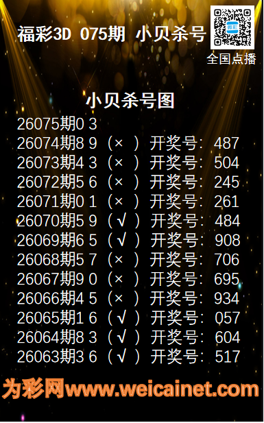 • 福彩3D26075期分析师小鲨鱼杀号图精选