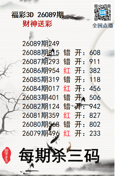 • 福彩3D26089期财神送彩杀三码