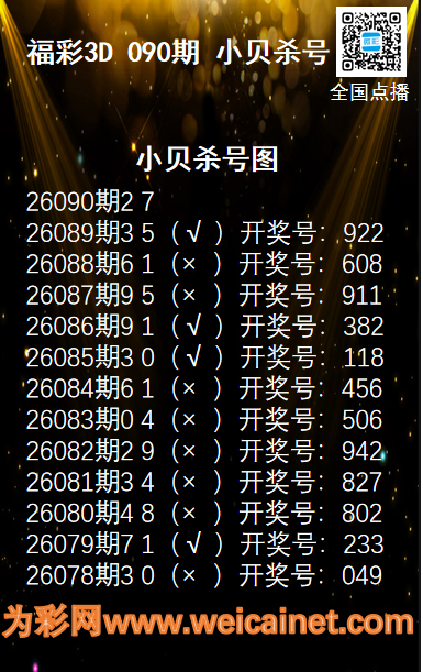 • 福彩3D26089期码师小贝杀号图精选