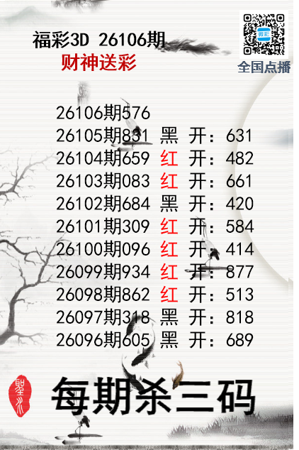 • 福彩3D26106期财神送彩杀三码