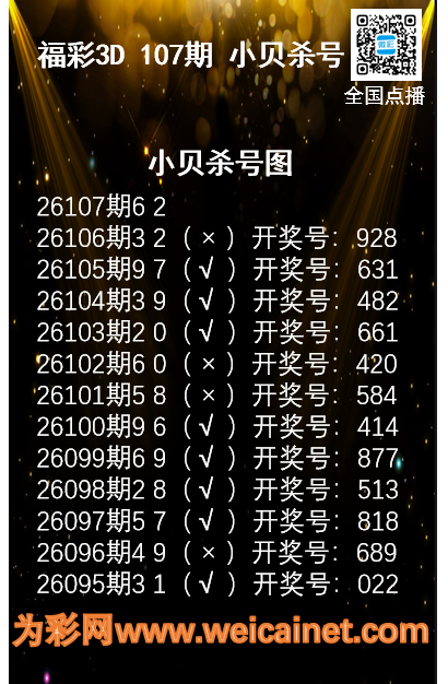 • 福彩3D26107期码师小贝杀号图精选