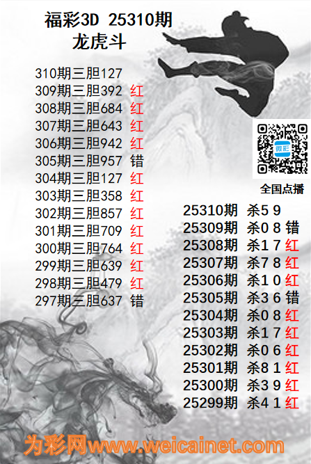 • 福彩3D25310期龙虎斗胆码 杀码图