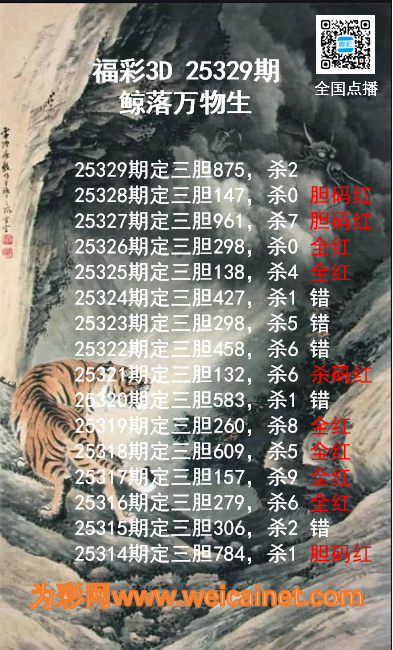 • 福彩3D26025期龙虎斗胆码 杀码图