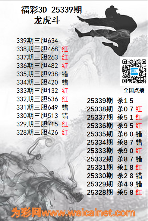 • 福彩3D25339期龙虎斗胆码 杀码图