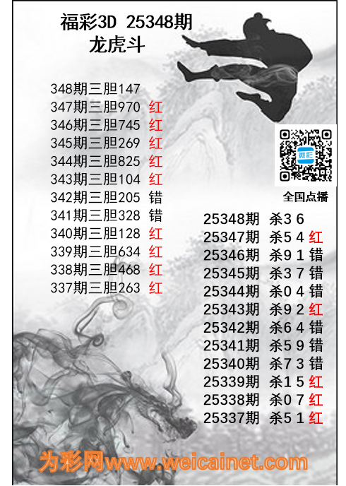• 福彩3D25348期龙虎斗胆码 杀码图