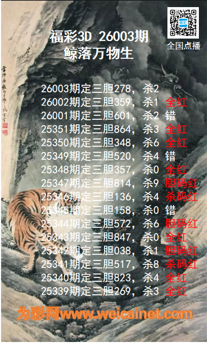 • 福彩3D26003期鲸落万物生胆码推荐