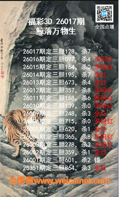 • 福彩3D26024期龙虎斗胆码 杀码图