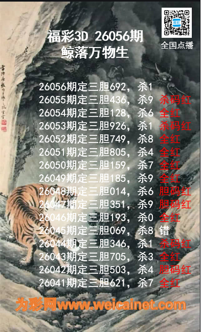 • 福彩3D26061期龙虎斗胆码 杀码图