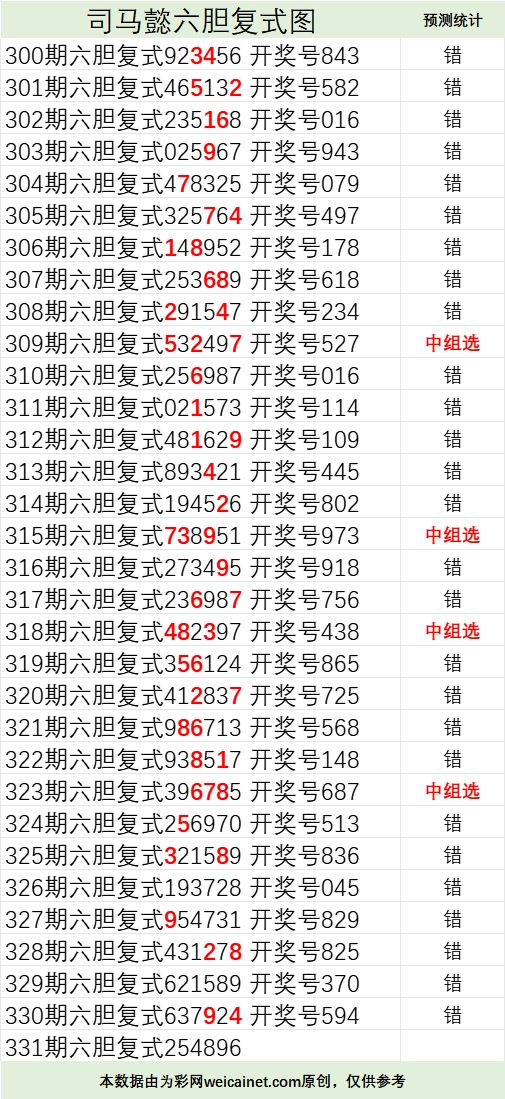 • 排列三26026期司马懿六胆复式预测图