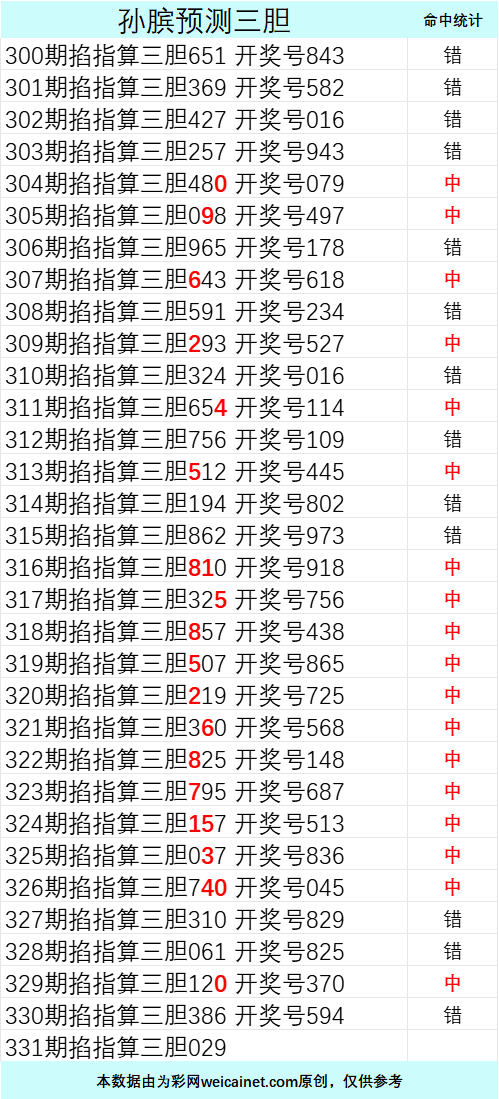 • 排列三25331期孙膑预测三胆