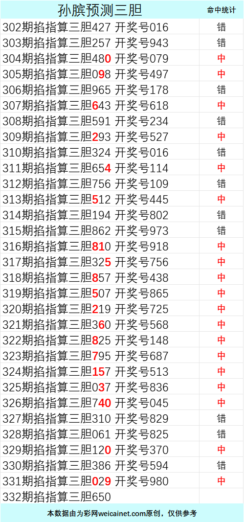 • 排列三25332期孙膑预测三胆