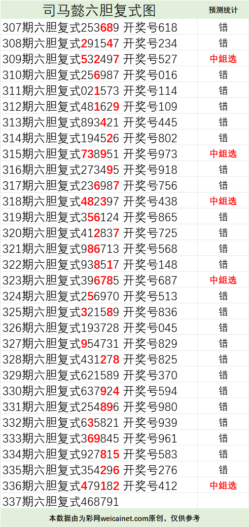 • 排列三25337期司马懿六胆复式预测图