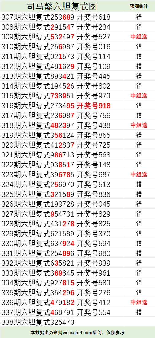 • 排列三25338期司马懿六胆复式预测图