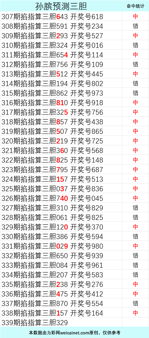 • 排列三25339期孙膑预测三胆