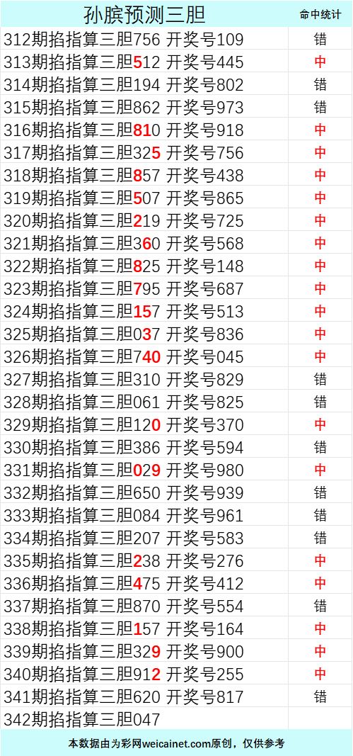 • 排列三25342期孙膑预测三胆