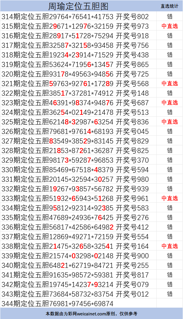 • 排列三25344期胆码 周瑜定位五胆图
