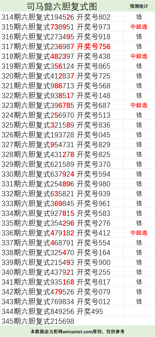 • 排列三26026期司马懿六胆复式预测图