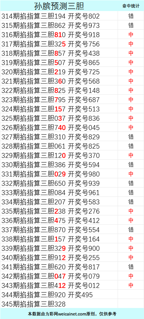 • 排列三25345期孙膑预测三胆