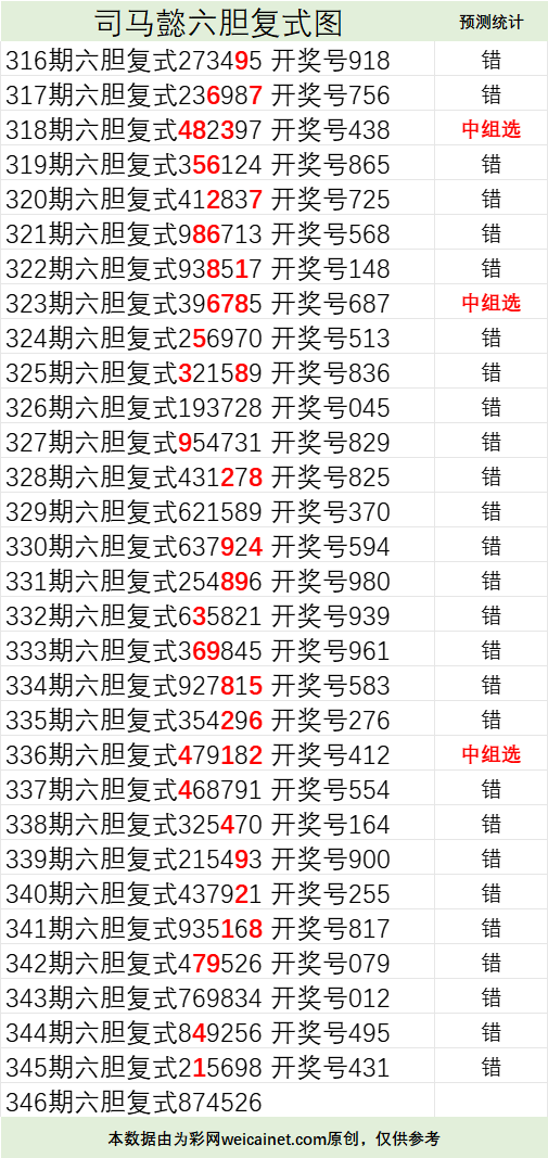 • 排列三25346期司马懿六胆复式预测图