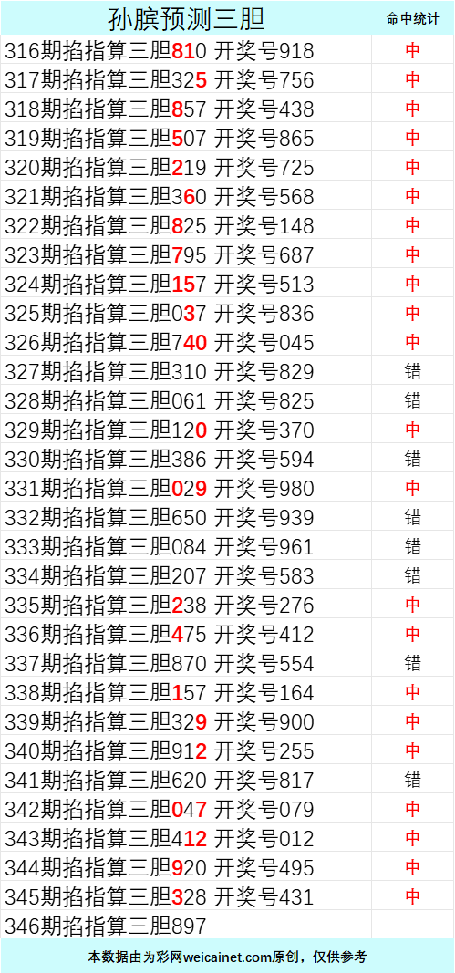 • 排列三26025期孙膑预测三胆