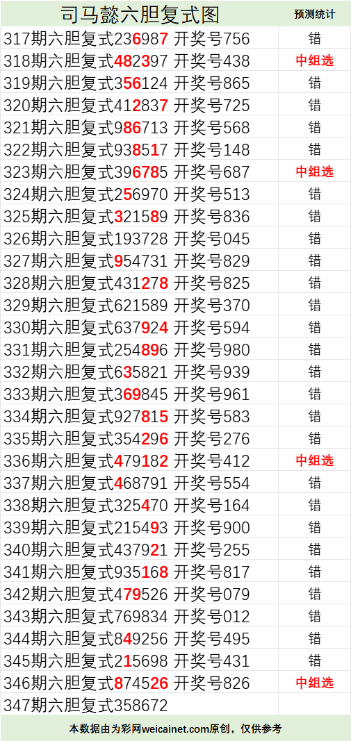 • 排列三25347期司马懿六胆复式预测图