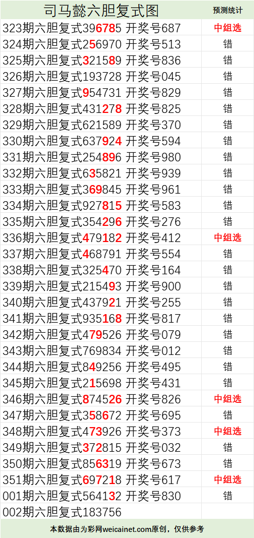 • 排列三26002期司马懿六胆复式预测图