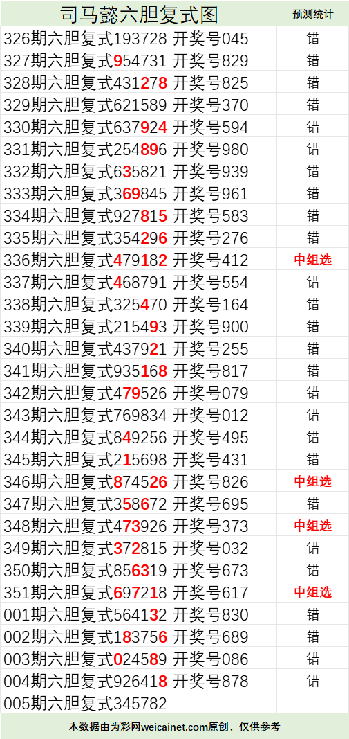 • 排列三26005期司马懿六胆复式预测图