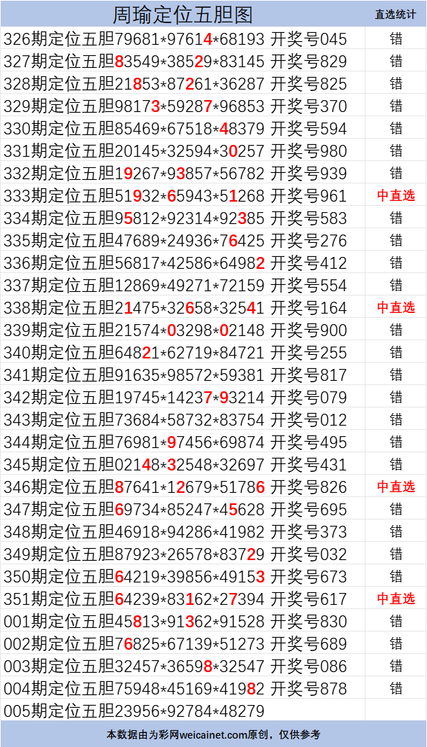 • 排列三26005期胆码 周瑜定位五胆图