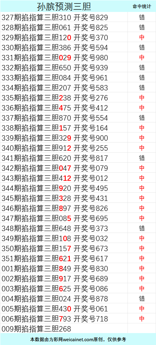 • 排列三26009期孙膑预测三胆