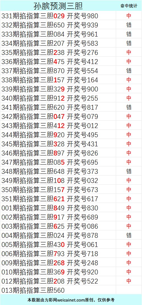 • 排列三26013期孙膑预测三胆