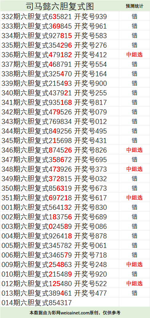 • 排列三26014期司马懿六胆复式预测图