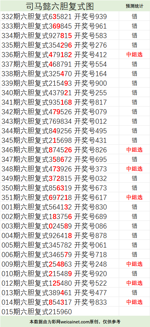 • 排列三26015期司马懿六胆复式预测图