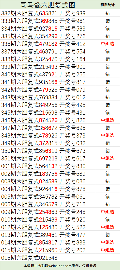 • 排列三26016期司马懿六胆复式预测图