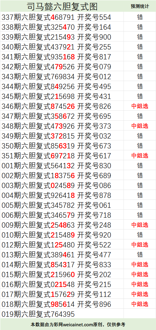 • 排列三26019期司马懿六胆复式预测图