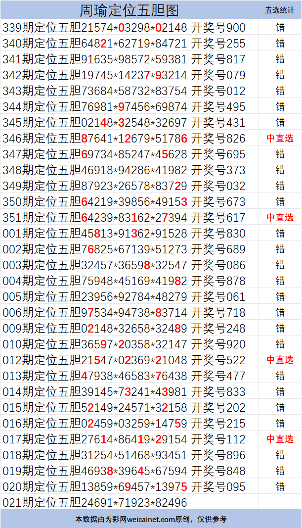 • 排列三26021期胆码 周瑜定位五胆图